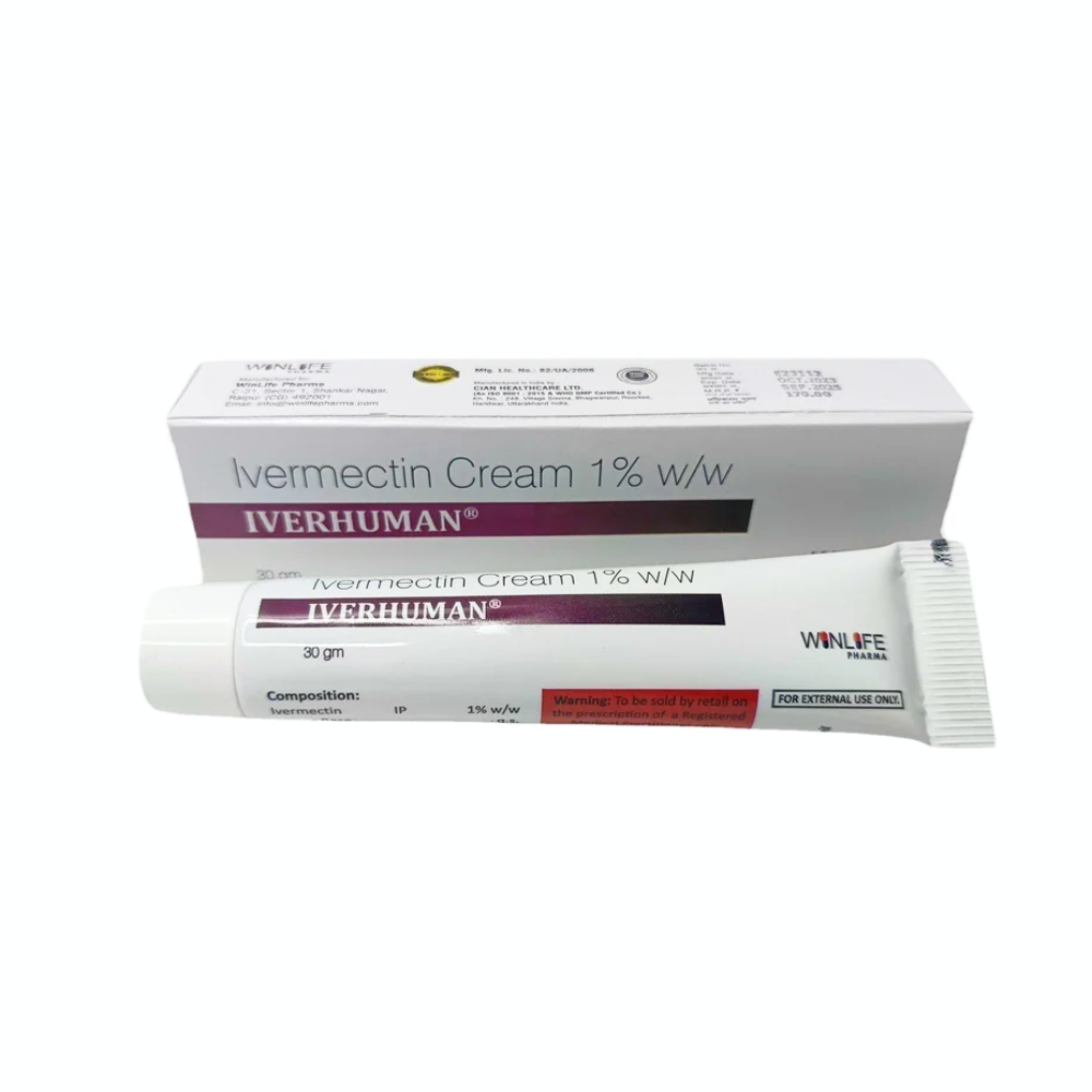 Iverhuman 1% Cream is a topical medication containing ivermectin, used in the treatment of certain skin conditions caused by parasites or inflammatory processes. It is commonly prescribed for conditions such as scabies and rosacea, where microscopic mites or inflammatory responses affect the skin.