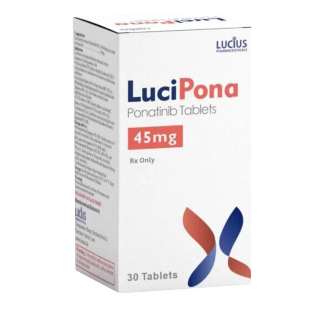 LuciPona 45 mg is a higher strength formulation of ponatinib used in the treatment of advanced or resistant leukemia. It is prescribed when lower doses or other treatments are not sufficient. This medicine is part of specialized oncology care in the United Kingdom, United States, Australia, Singapore and Philippines. LuciPona 45 mg helps slow disease progression and manage symptoms effectively when used under expert medical guidance. Active Ingredient Ponatinib is a potent tyrosine kinase inhibitor that targets multiple signaling pathways involved in cancer growth. It is especially effective against resistant mutations. Uses of LuciPona 45 mg • Treatment of advanced leukemia • Management of resistant cancer cases • Relief from disease symptoms • Support for targeted therapy How LuciPona 45 mg Works Ponatinib blocks abnormal kinase activity in cancer cells preventing their growth and survival. This leads to reduced tumor burden and improved disease control. How to Use LuciPona 45 mg 1. Take exactly as prescribed 2. Swallow whole with water 3. Do not change dose without advice Possible Side Effects • High blood pressure • Fatigue • Nausea • Skin rash Precautions • Regular cardiovascular monitoring required • Inform doctor about liver conditions • Avoid use during pregnancy Safety Information Use only under specialist supervision. Close monitoring is essential due to potential serious side effects. Storage • Store in a cool dry place • Protect from moisture • Keep out of reach of children
