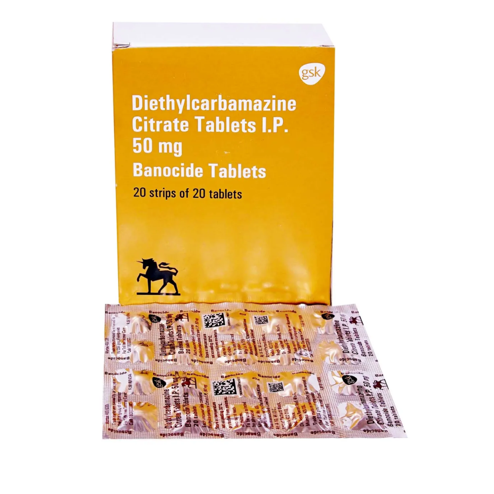 Banocide Forte Tablet belongs to a class of medication called anti-helminthic. It is used in the treatment of worm infections and filariasis. It can act against both the larval and adult forms of the parasitic worms that cause filariasis. Banocide Forte Tablet should be used in the dose and duration as advised by your doctor. It should be taken with food, preferably at a fixed time. Avoid skipping any doses and finish the full course of treatment even if you feel better. Do not take a double dose to make up for a missed dose. Simply take the next dose as planned. Some people may experience a headache, dizziness, vomiting, and abnormal liver function tests as the side effects of this medicine. Please consult your doctor if these side effects persist for a longer duration. You may be monitored with blood tests and liver function tests throughout your treatment.