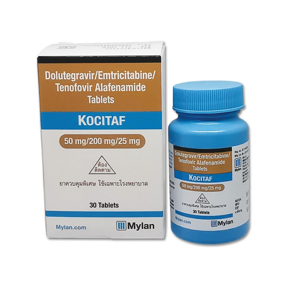Kocitaf Tablet contains the active ingredient Kocitaf Tablet. It is a combination of antiretroviral medication. Dolutegravir belongs to a class of antiretroviral drugs called integrase strand transfer inhibitors (INSTIs). Emtricitabine belongs to the class of medication called nucleoside reverse transcriptase inhibitor (NRTI), and tenofovir alafenamide belongs to the class called nucleotide reverse transcriptase inhibitor (NtRTI). It is combined with other medicines to treat human immunodeficiency virus (HIV-1) infection in adults and adolescents 12 years of age who weigh at least 35kg.