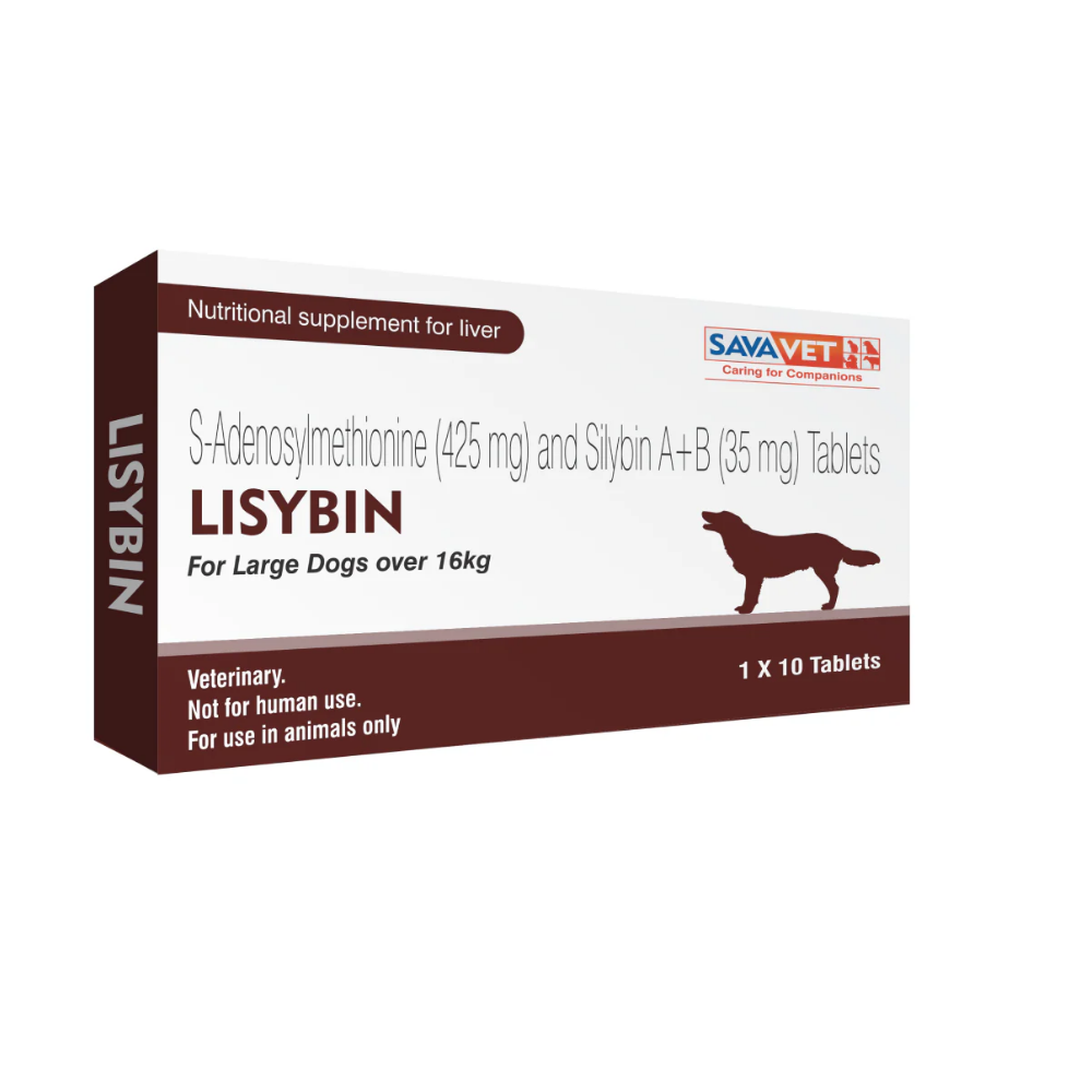 LISYBIN MEDIUM TABLET is a specialized liver care medicine developed by SAVA VET for medium breed dogs (6-16kg). This veterinary medicine employs S-Adenosylmethionine (SAMe) and Silybin (A+B), making it a highly effective option for supporting and maintaining liver health in dogs. Animeal offers this product, adhering to its dedication to providing top-tier pet healthcare solutions. Ingredients S-Adenosylmethionine (SAMe): Acts as a significant antioxidant and anti-inflammatory nutraceutical, vital for liver health. It boosts liver levels of glutathione, crucial for liver function, and aids in cell repair and regeneration. SAMe is also known to support cognitive function in dogs, contributing to overall brain health​​​​. Silybin (A+B): A component of silymarin, known for its antioxidant properties. It supports liver function by maintaining a healthy oxidative balance and supports liver cell regeneration, making it an effective treatment for various liver diseases​​.