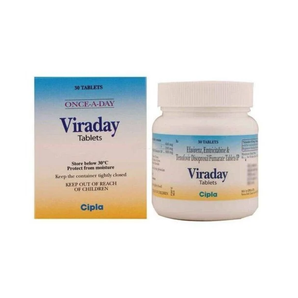 Viraday Tablet is a combination of antiretrovirals medicines. It is prescribed to treat HIV (human immunodeficiency virus) infection. It boosts up the immunity to fight against HIV to manage or treat AIDS (acquired immunodeficiency syndrome). Viraday Tablet restricts the growth of HIV in the body and reduces the risk of getting HIV-related complications to improve the lifespan of an individual. The medicine should be taken in an empty stomach for better efficacy. Taking these medicines regularly at the same time increases their effectiveness. A dose of this medicine should not be missed as it can affect your recovery. It is important to complete the full course of the treatment until your doctor advises you to stop it.